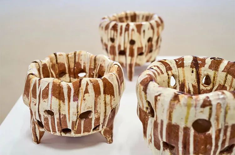 Marit Tingleff 的作品富有表現(xiàn)力,具有強(qiáng)烈的裝飾性特征和起伏的有機(jī)線條。重力決定了釉底在表面流動(dòng)的方向,因?yàn)樵谕磕ㄟ^(guò)程中盤子和瓷磚會(huì)被抬起。重復(fù)節(jié)奏的垂直線條表明這種動(dòng)作是沖動(dòng)的,但技術(shù)嫻熟。她對(duì)彩色釉料的繪畫應(yīng)用參考了自然、陸地和海景,盡管上釉和燒制的過(guò)程很復(fù)雜,但她仍然保持著令人難以置信的自發(fā)感,平衡了明暗、圖案和空白區(qū)域,同時(shí)嘗試了不同的標(biāo)記制作方式。