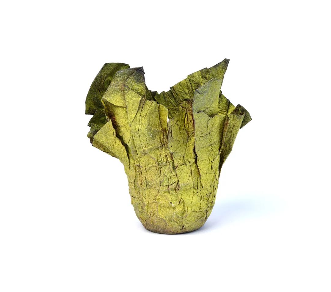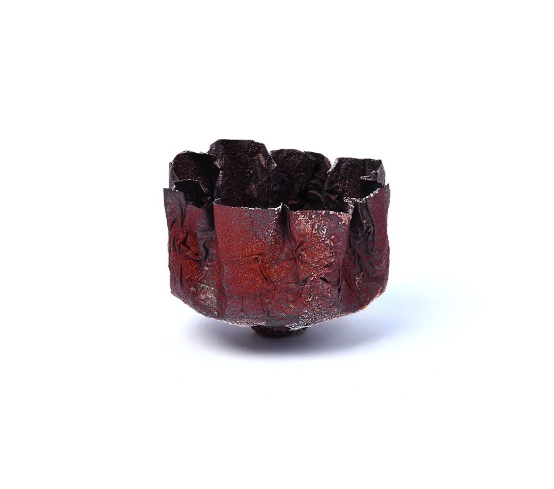 她的容器是對(duì)形狀、空間和空虛之間相互作用的令人回味的反思——每一件獨(dú)特的作品都是手工鍛造的,證明了迪特曼對(duì)金屬的精通和永恒的技巧。有些看起來(lái)好像浸入火山熔巖后仍處于熔融狀態(tài),或者因漏油而滑溜溜的。另一些看起來(lái)好像巧克力櫻桃的皺巴巴的紅色箔片被巧妙地打開(kāi),并在珍貴的糖果從包裝紙中取出后完好無(wú)損。在所有情況下,精致的表面都掩蓋了堅(jiān)固的金屬形狀。雖然大部分都是空氣,但就連空氣本身也不得不承認(rèn)它被精心包裹著。
