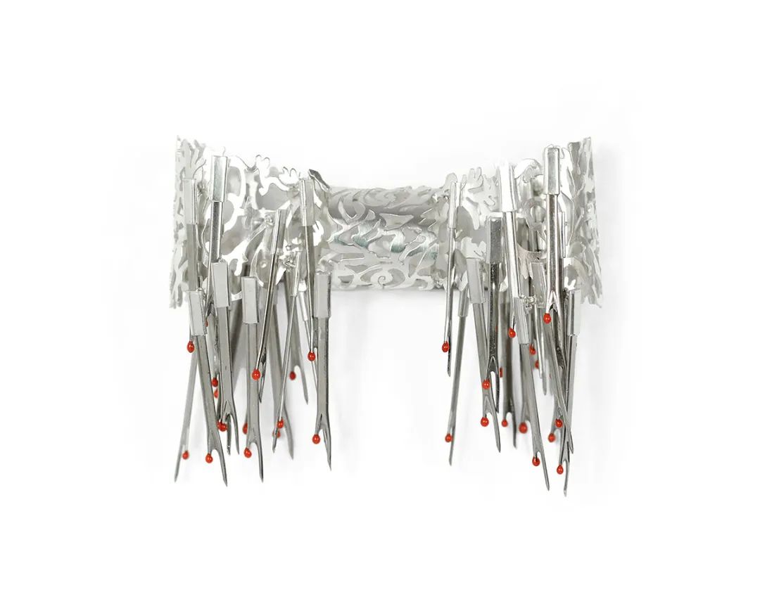 《超越裝飾品的言語(yǔ)》介紹了現(xiàn)代配飾,在混亂和缺乏溝通的現(xiàn)代社會(huì)會(huì)中,它們作為一種雖小卻強(qiáng)大的言語(yǔ)媒介。在氣候變化和流行病等全球危機(jī)中,人類面臨著必須重新考慮材料的價(jià)值和溝勾通的意義的境地。在過(guò)剩與不足、憤怒與無(wú)奈等非物質(zhì)性、互不相關(guān)的情感中,我們想關(guān)注現(xiàn)代飾品為粗糙的情感增光添忝彩、作為溝通的另類功能的新可能性。過(guò)去,珠寶原本是增添美感或者是財(cái)富和權(quán)力的象征,現(xiàn)在已經(jīng)成為傳達(dá)藝術(shù)、哲哲學(xué)和社會(huì)信息的藝術(shù)品?!冻窖b飾的評(píng)論》涉及韓國(guó)和奧地利當(dāng)代珠寶所展現(xiàn)的各種形式實(shí)驗(yàn)和概念前衛(wèi)。111位藝術(shù)家(團(tuán)隊(duì))的作品從探索與身體的關(guān)系出發(fā),將自然投射到圖像中,表達(dá)與時(shí)空相關(guān)的各種社會(huì)問(wèn)題和話語(yǔ)。我們邀請(qǐng)青您探索現(xiàn)代配飾的世界,這些配飾超越裝飾,彰顯制造商和佩戴者的身份和個(gè)性。