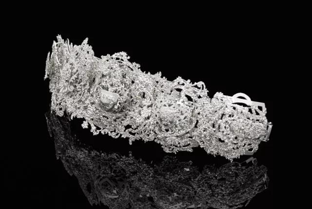 田口老師在其作品中使用了傳統(tǒng)的wabori (和彫り,日式刺青雕刻技術(shù)),耗時(shí)費(fèi)力的地雕刻出無比耀眼的銀表面,給人仿佛鑲滿鉆石的視覺感受。這樣的表面是不可能拋光的,所以在銀表面鍍上銠以防止失去光澤,這種日本雕刻技術(shù),一直主宰著他的作品直到今天。