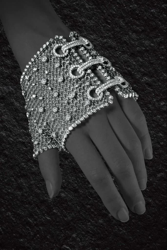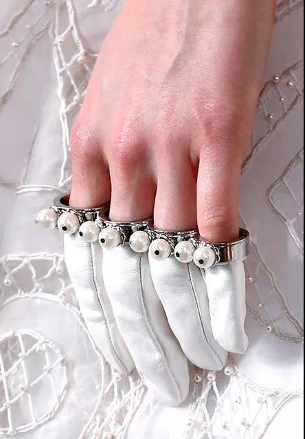 這只非常獨特的半指環(huán)-半指手套的手飾是莎拉·伯頓(Sarah Burton)為麥昆設(shè)計的系列作品之一,收藏數(shù)量極少,但它所展現(xiàn)的時尚文化和自我放縱的奢華感都給人留下了深刻印象。