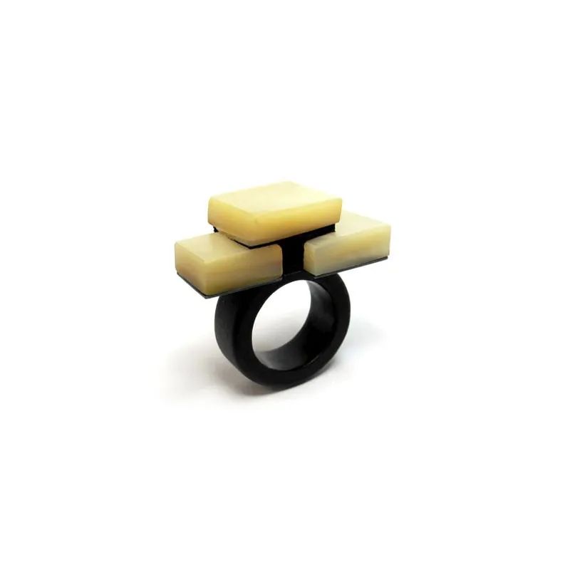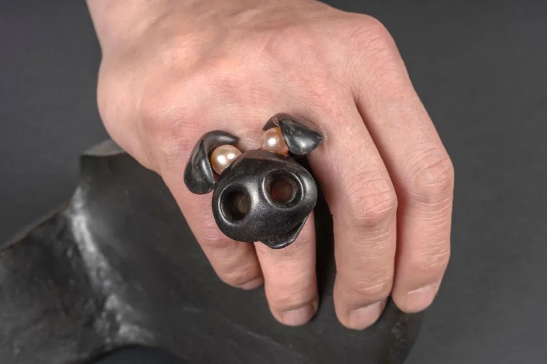 Minegishi制作的首飾和物品不僅需要佩戴,還需要撫摸。他通常將大塊天然材料(如烏木、琥珀、水晶、黑玉、日本木材和 lignum vitae)雕刻成環(huán),呈現出感性的漩渦、扭曲的平面或類似乳房的半球——這些具有觸感的物體體現了護身符的力量。每一個角度都展現出獨特視角,每一件作品都達到完美的平衡。Minegishi的作品尺寸雖小,卻展現出了雕塑造型的不朽。